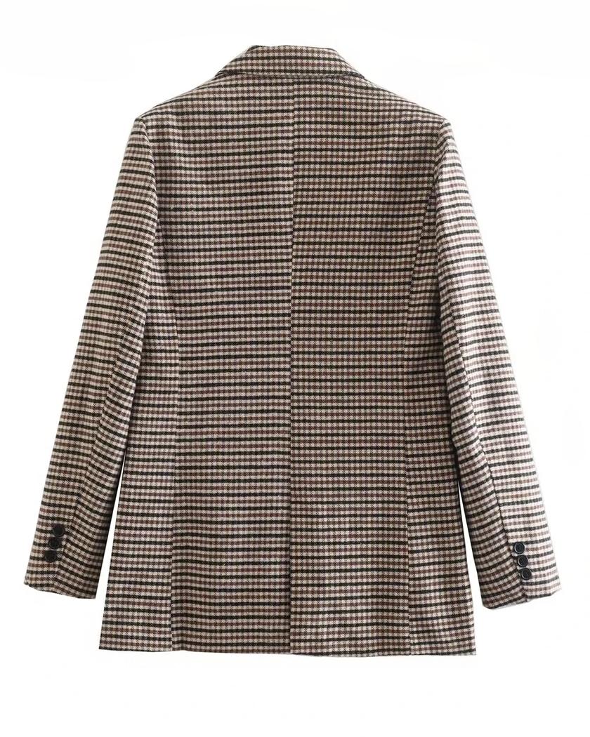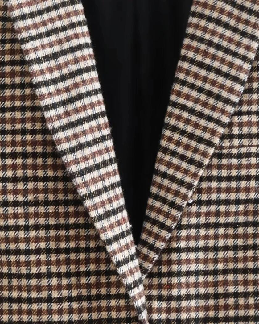 Ce blazer large à carreaux noirs et marrons pour femme est un incontournable de la garde-robe féminine. Confectionné dans un tissu de qualité, il offre un tombé impeccable et une silhouette élégante. Les carreaux noirs et marrons apportent une touche de sophistication et de modernité à ce blazer intemporel.