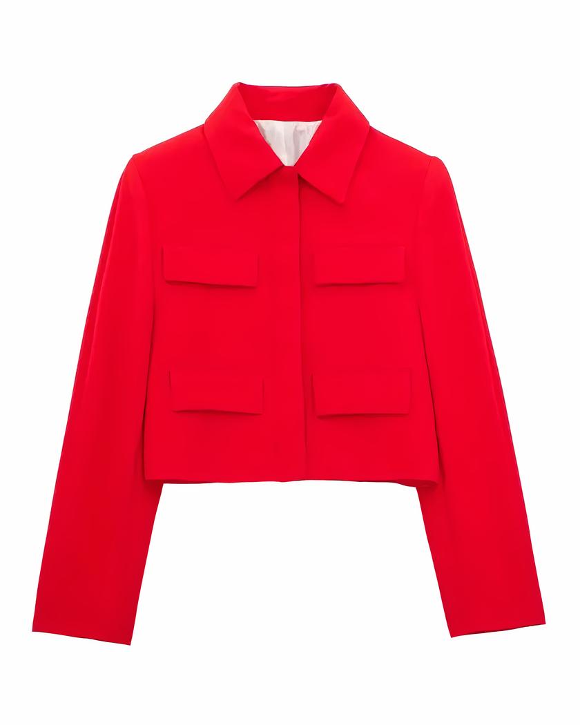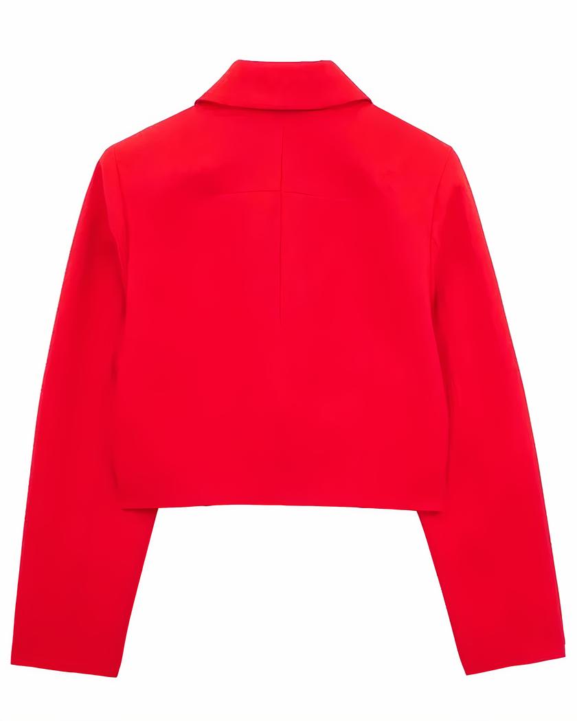 Notre blazer court pour femme rouge est un vêtement indispensable dans votre garde-robe. Avec sa coupe ajustée et sa couleur vibrante, il apporte une touche d’élégance et de sophistication à n’importe quelle tenue.