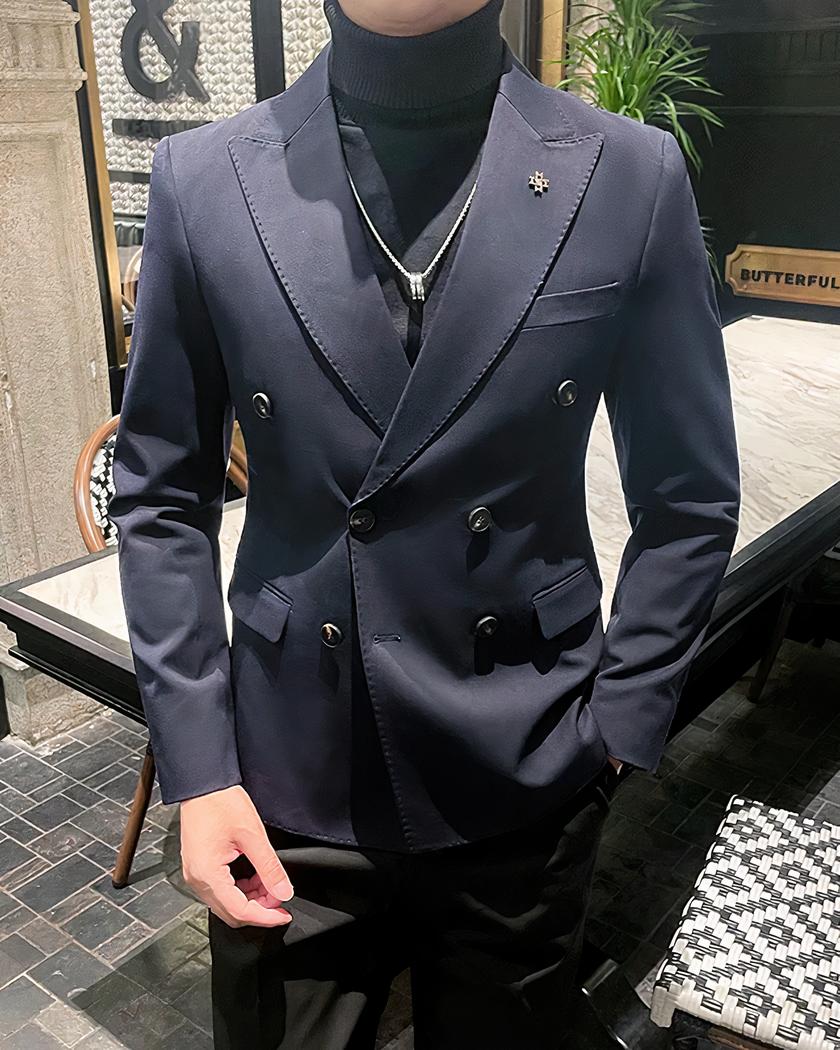 Porté avec une chemise blanche et une cravate assortie, ce blazer vous donnera une allure distinguée et professionnelle. Pour un look plus décontracté, vous pouvez le porter avec un t-shirt uni et des baskets blanches. Quelle que soit l'occasion, ce blazer croisé chic pour homme est un indispensable de votre dressing pour un style impeccable et élégant.