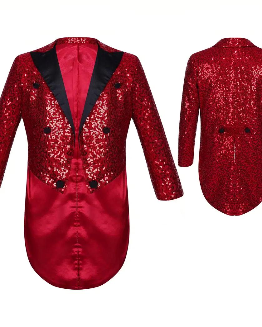 Vous recherchez un blazer très élégant pour votre garçon ? Optez pour ce blazer queue de pie à paillettes pour garçon. Son petit côté spectaculaire éblouira tous vos proches, à commencer par son propriétaire !