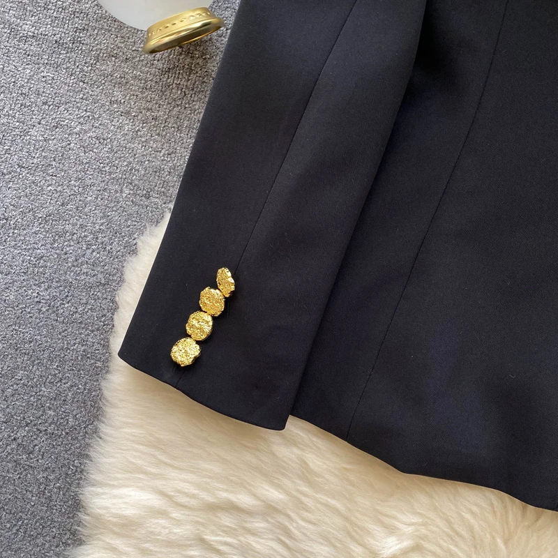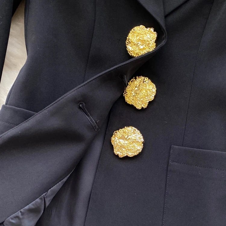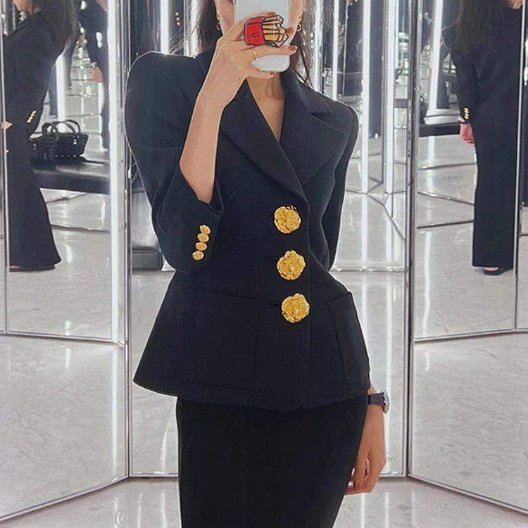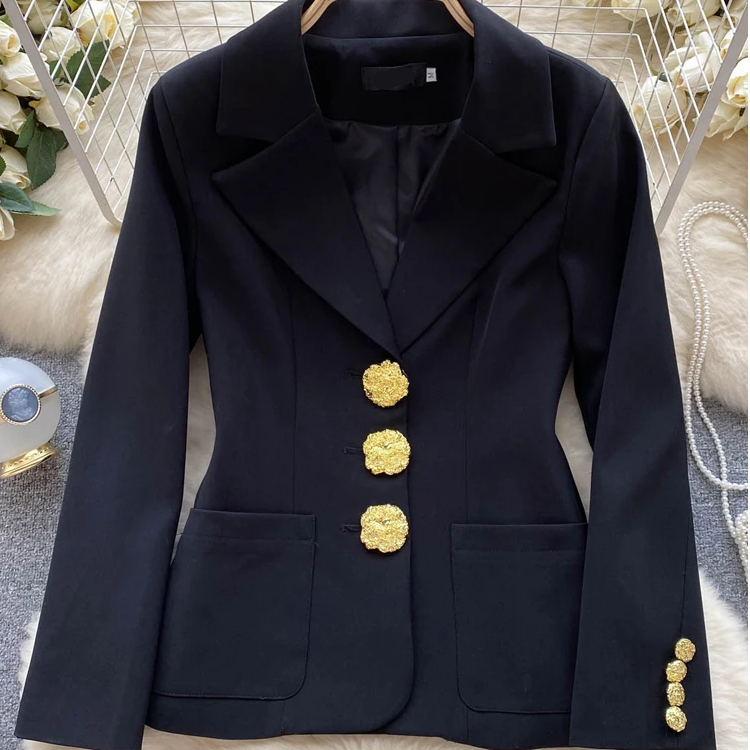 Un blazer noir chic aux boutons dorés