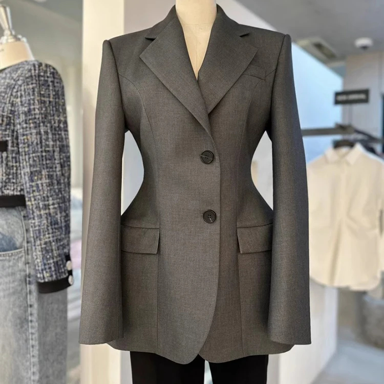 Notre blazer pour femme cintré long est le vêtement idéal pour les saisons froides. Sous un manteau ou seul pour les saisons estivales, ce blazer est incontournable. Long, il couvrira vos cuisses.