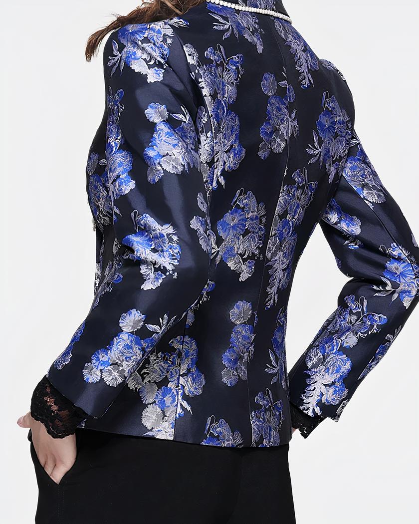 Ce blazer croisé à fleurs bleues pour femme arbore une coupe intemporelle qui met en valeur la silhouette féminine, avec sa taille cintrée et ses épaules structurées. Les boutons argentés ajoutent une touche d'élégance supplémentaire à ce vêtement déjà très chic. Ajoutez-le à votre garde-robe pour les occasions formelles qui vous attendent.