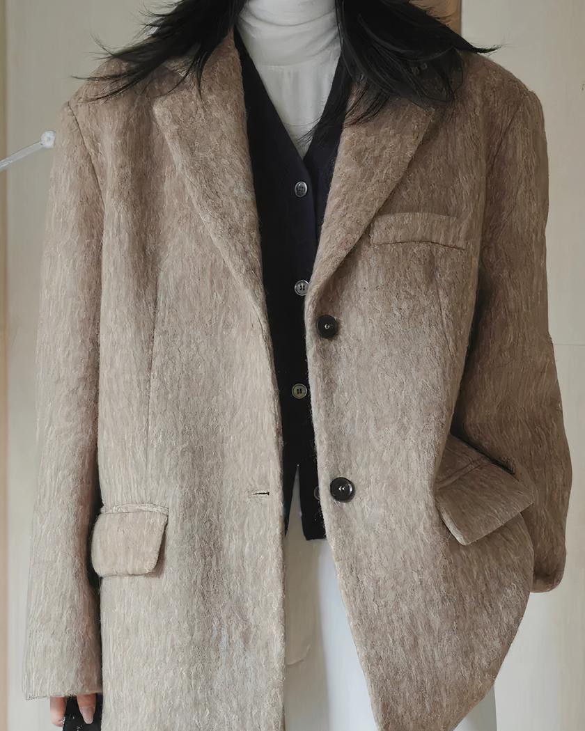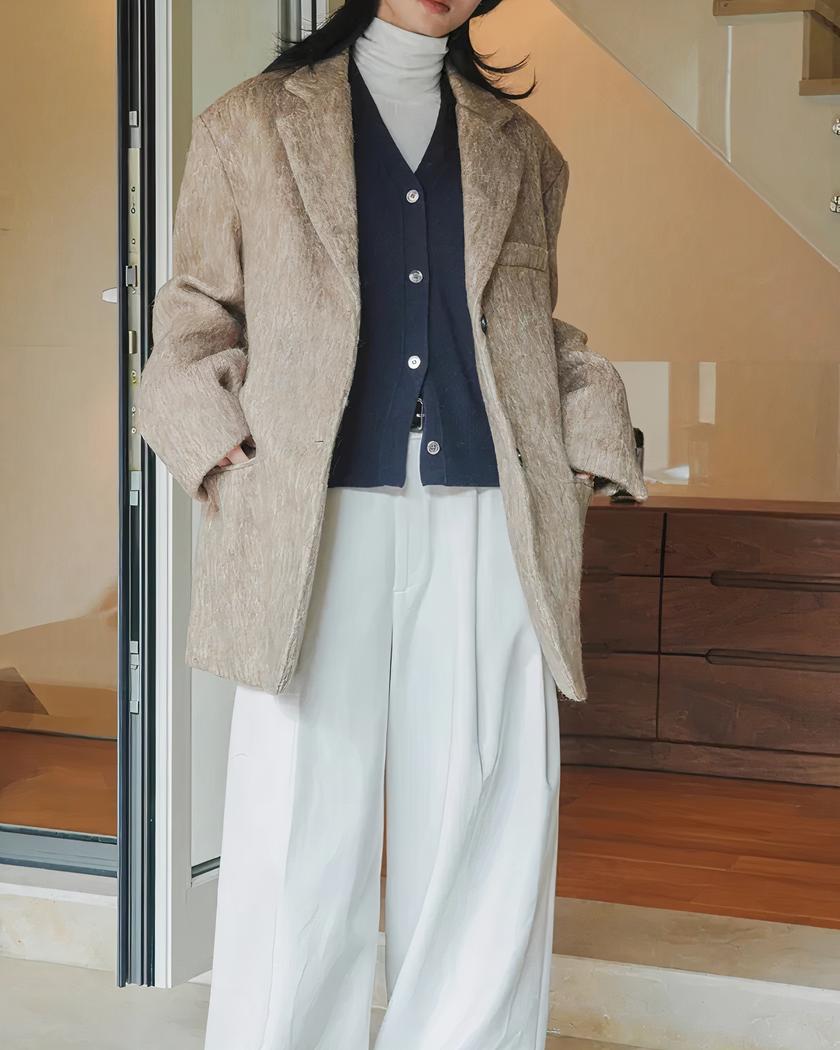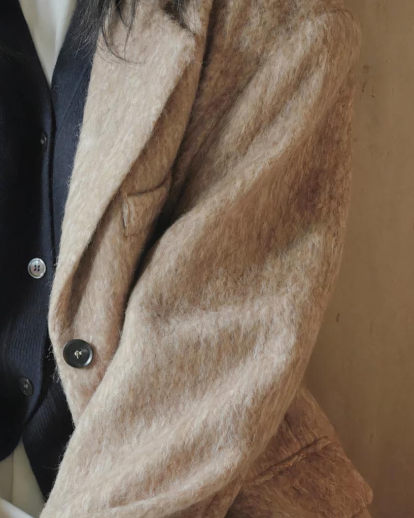 Ce blazer d'hiver en laine d'alpaga pour femme est doté de détails raffinés tels que des boutons noirs et un col élégant. Sa couleur neutre et intemporelle s'harmonisera facilement avec toutes vos tenues, que ce soit pour une journée au bureau ou une soirée chic. Ajoutez-le dès maintenant à votre dressing hivernal !