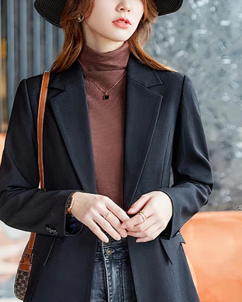 Notre blazer long pour femme est un vêtement indispensable de la garde-robe automne-hiver. Conçu dans une coupe élégante et sophistiquée, ce blazer apporte une touche de chic à n’importe quelle tenue.