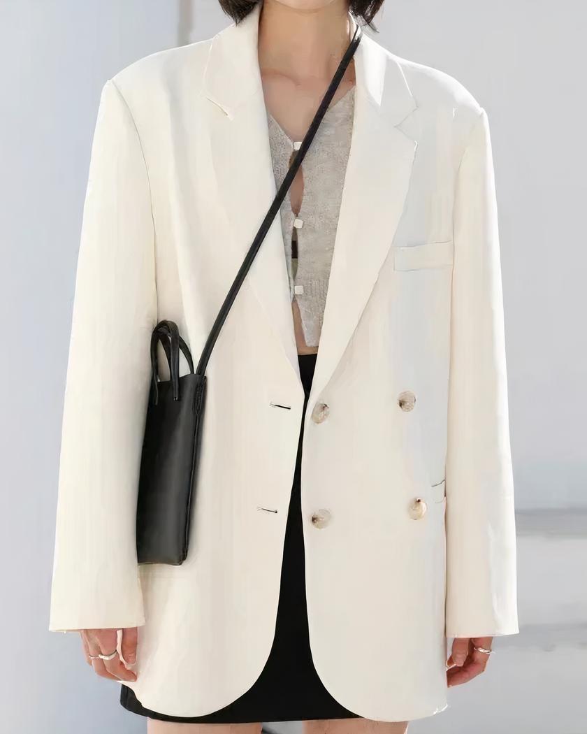 Notre blazer long pour femme est un vêtement indispensable de la garde-robe féminine, alliant élégance et modernité. Disponible en blanc ou en noir, ce blazer se distingue par sa coupe ajustée.