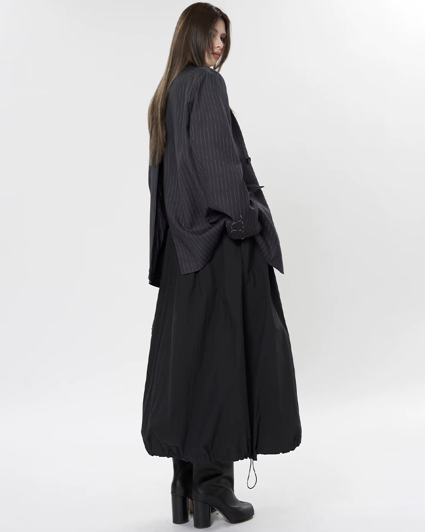 Vous connaissez ces matins où chaque veste semble étriquée, comme si votre personnalité devait rentrer dans un moule trop étroit. Enfilé nonchalamment, ce blazer oversize renverse la tendance : ses épaules généreuses, son bas arrondi et ses rayures affûtés projettent une assurance urbaine inspirée des podiums japonais.