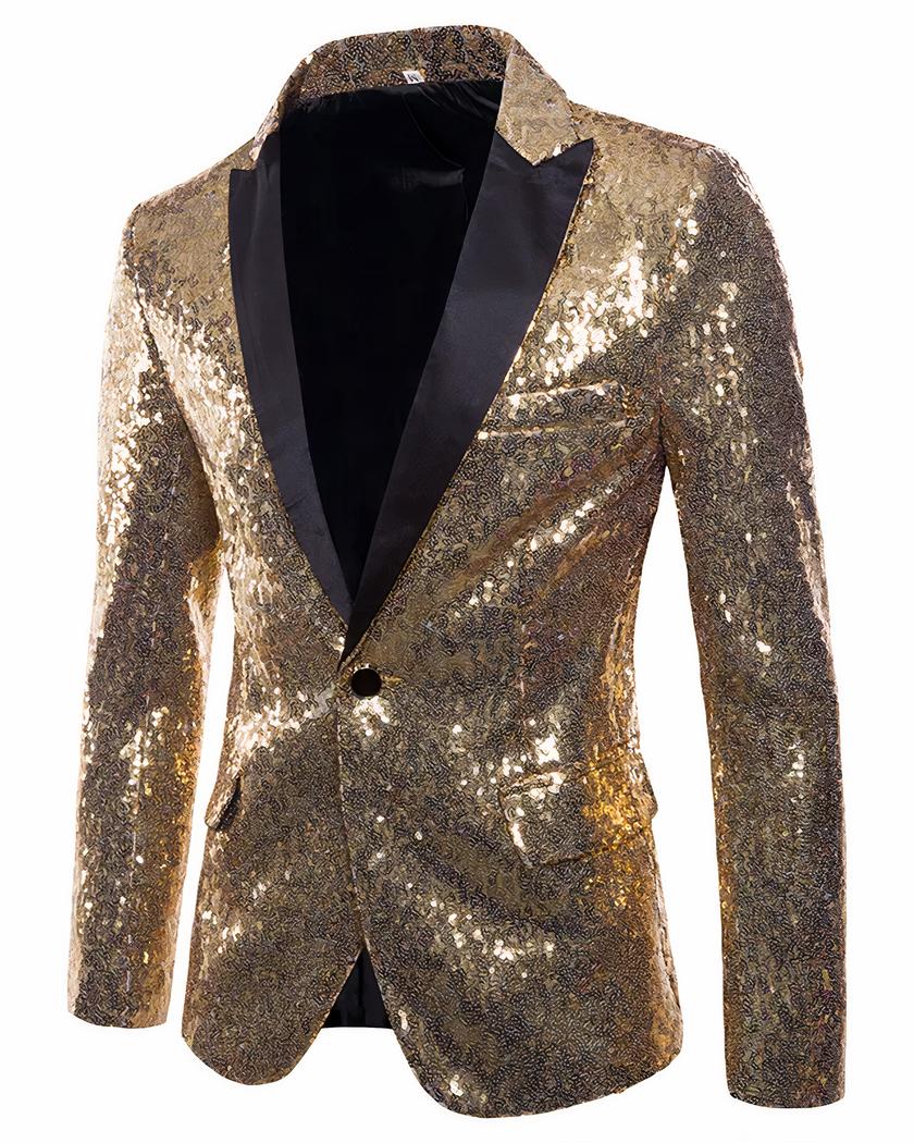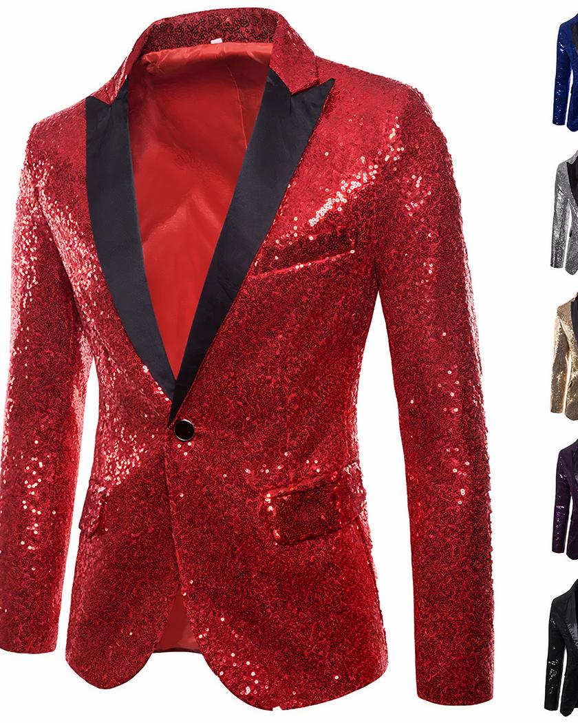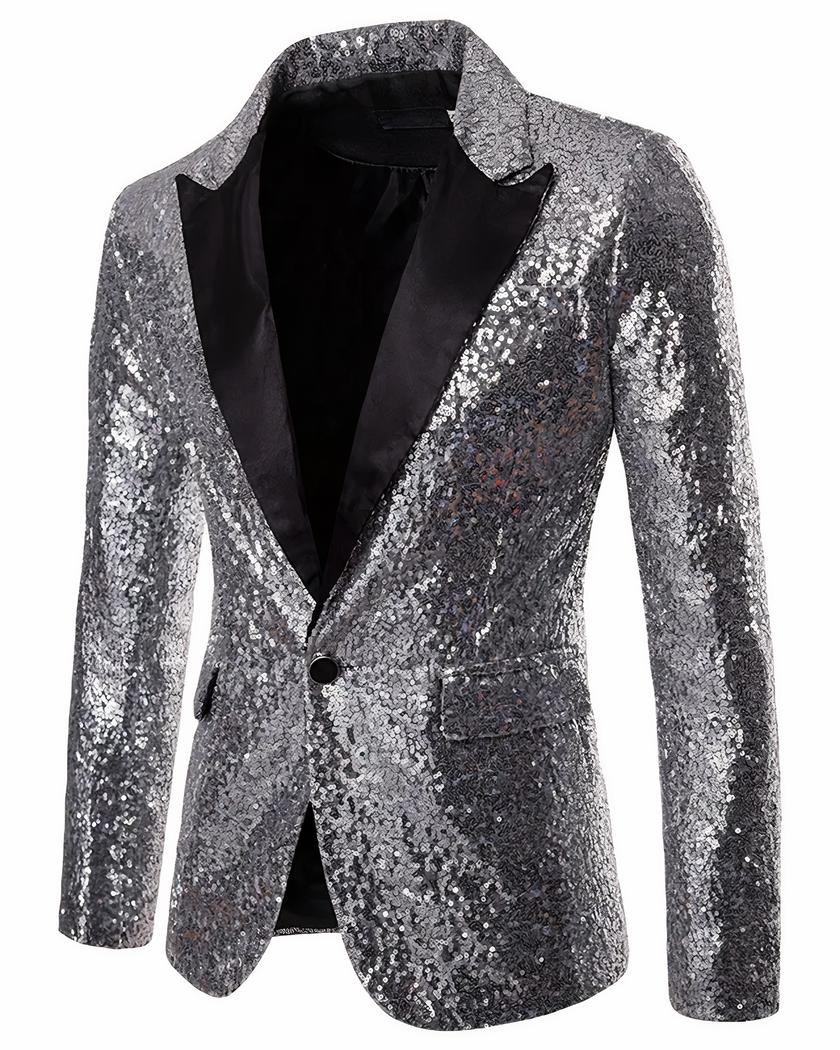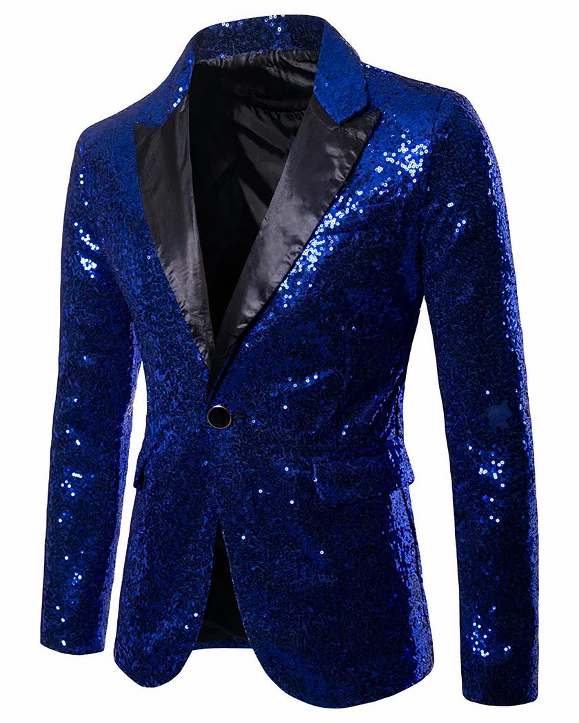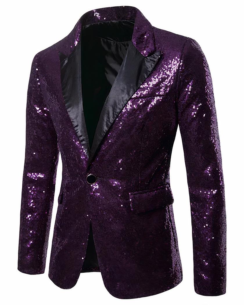 Ce blazer paillette homme à col cranté est résolument élégant et racé avec ses revers soyeux. Ses six couleurs parfaites pour lui en font un véritable smoking qui sera un ravissement pour les yeux.