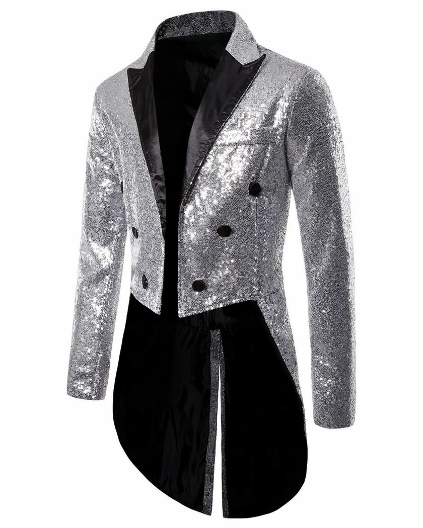Ce blazer paillette homme smoking queue de pie est véritablement une pièce iconique de l’élégance masculine, à porter dans les occasions très habillées, très chics et sur une scène, pour cérémonies ou spectacles.