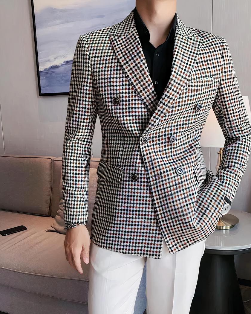Ce blazer pied de poule pour homme est un incontournable de la garde-robe masculine. Ce vêtement élégant et sophistiqué se distingue par son motif à carreaux, qui apporte une touche de style et d’originalité.