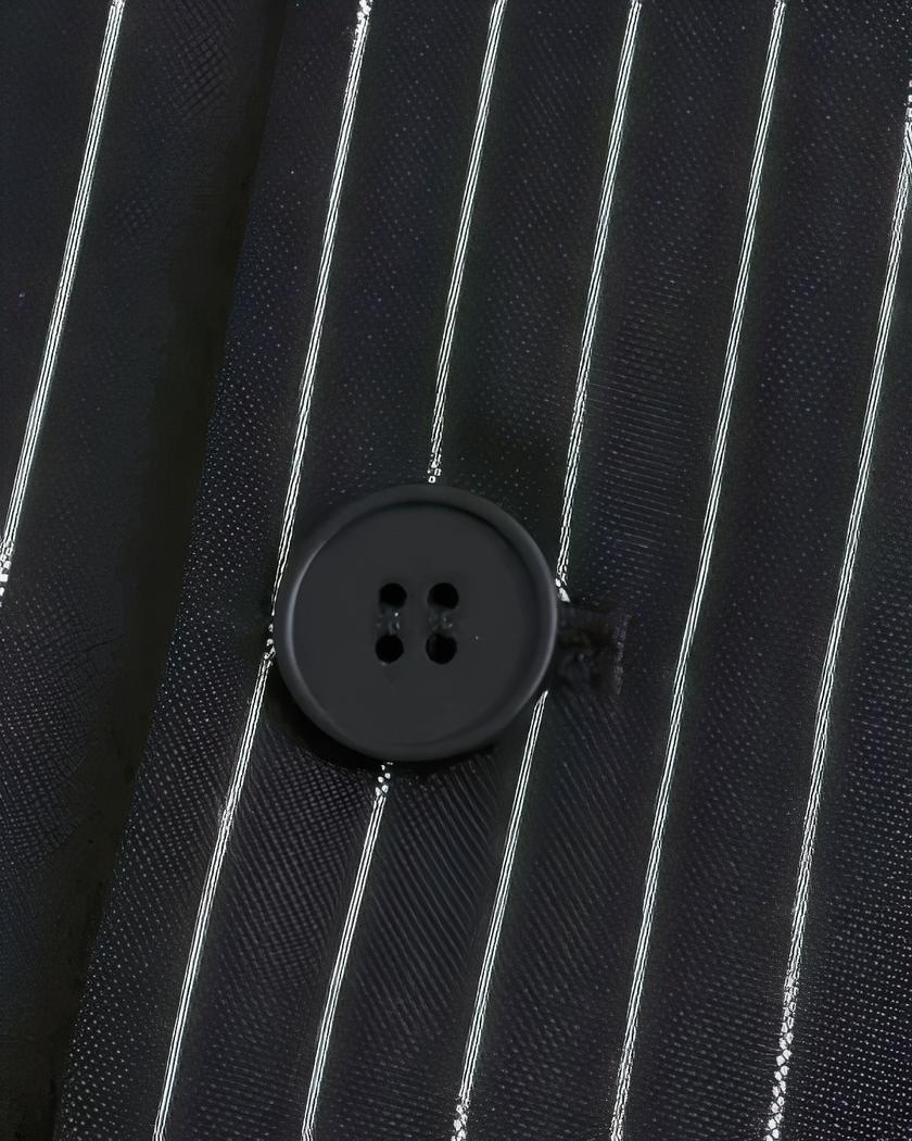 Parfait pour les occasions formelles ou professionnelles, ce blazer noir à rayures fines pour femme se marie facilement avec une jupe crayon ou un pantalon cigarette pour un look chic et raffiné. Les détails soignés tels que les boutons ou les poches latérales ajoutent une touche d'élégance supplémentaire à ce vêtement intemporel.