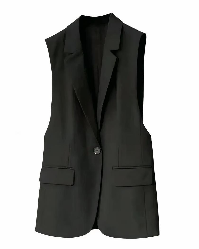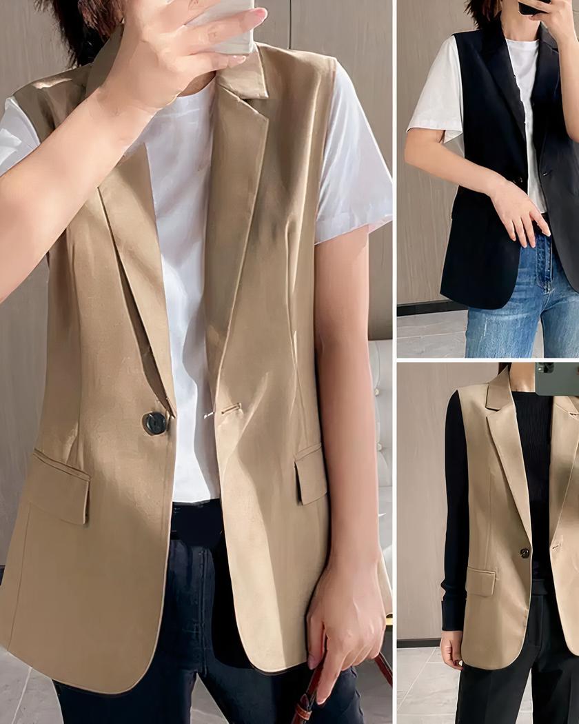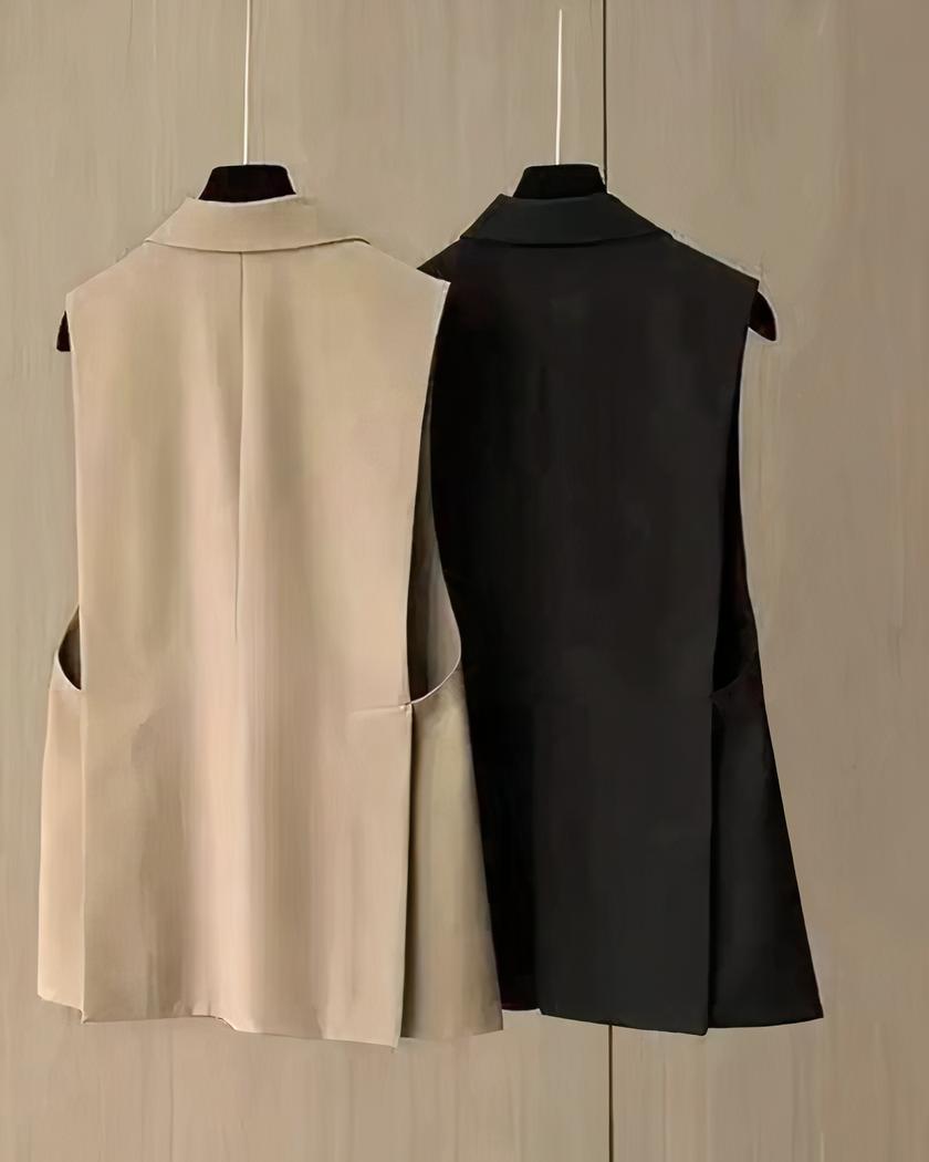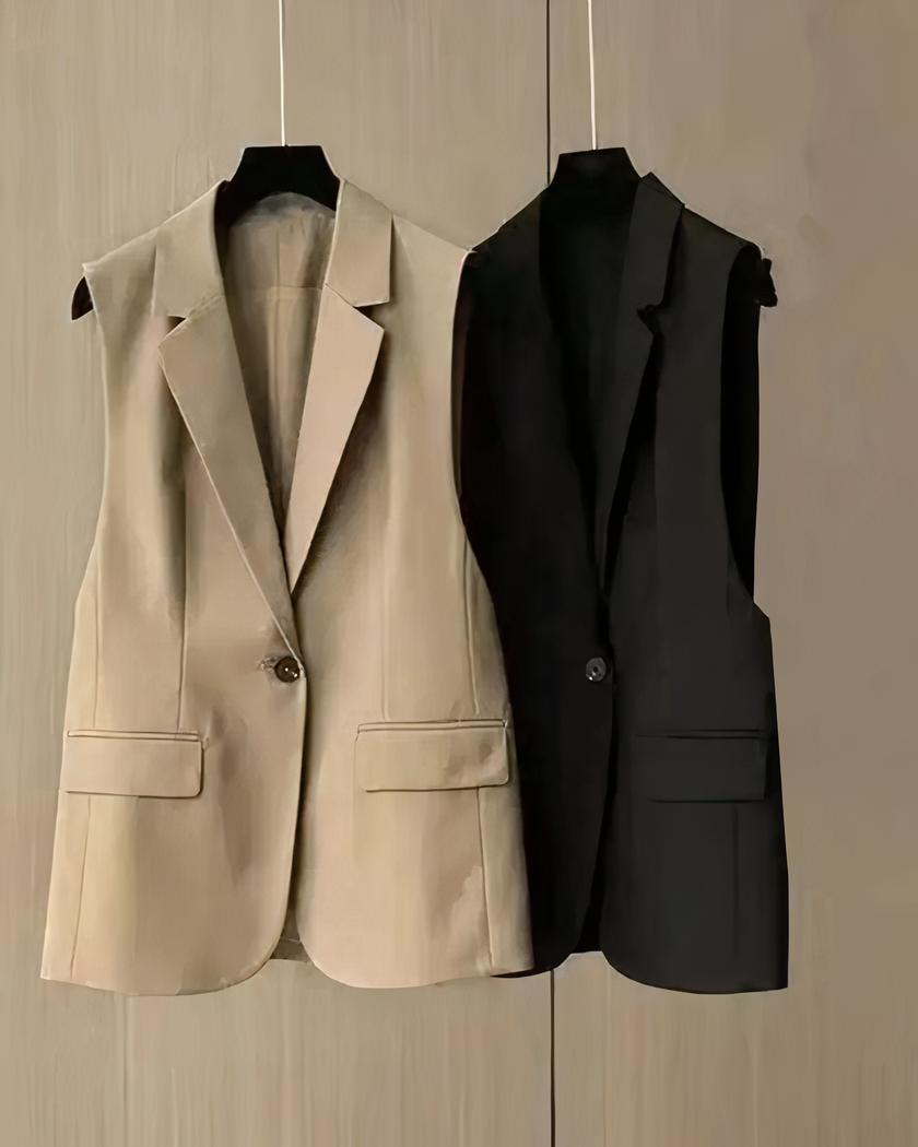 Blazer sans manche pour femme en noir et en camel