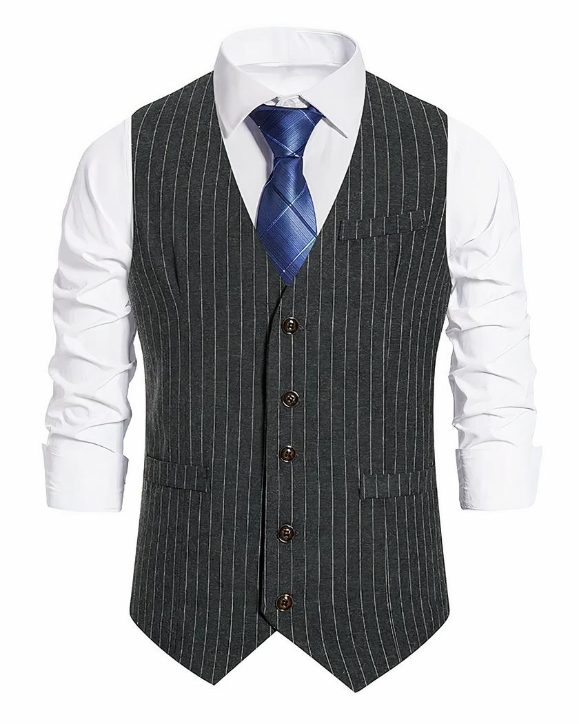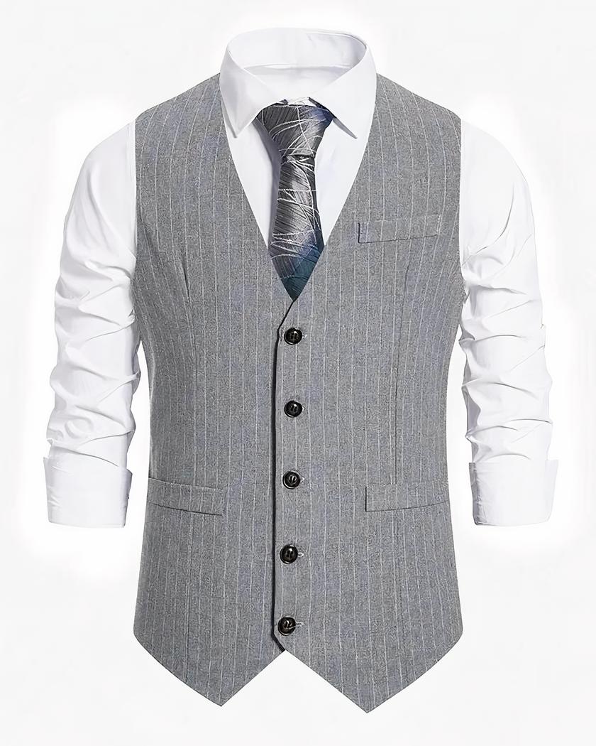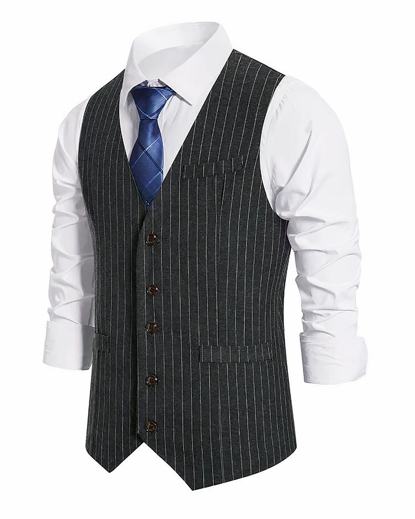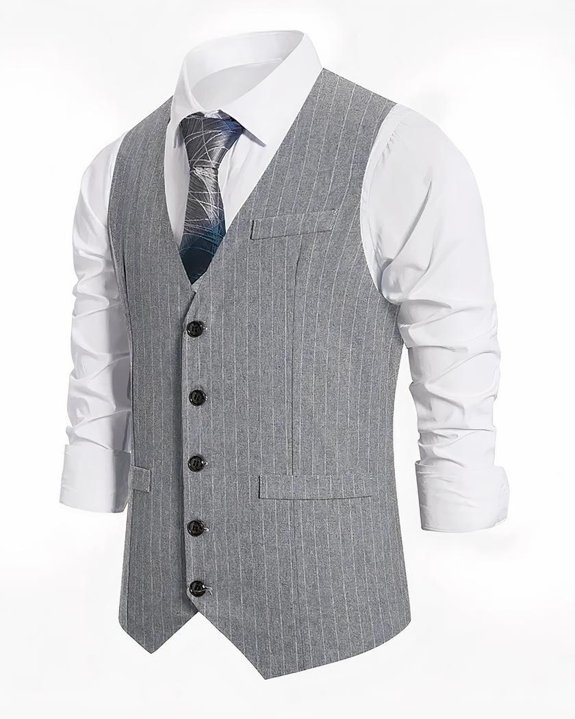 Découvrez notre blazer sans manches classique à rayures pour homme. Il est parfait pour les superpositions et les tenues en demi-saison.