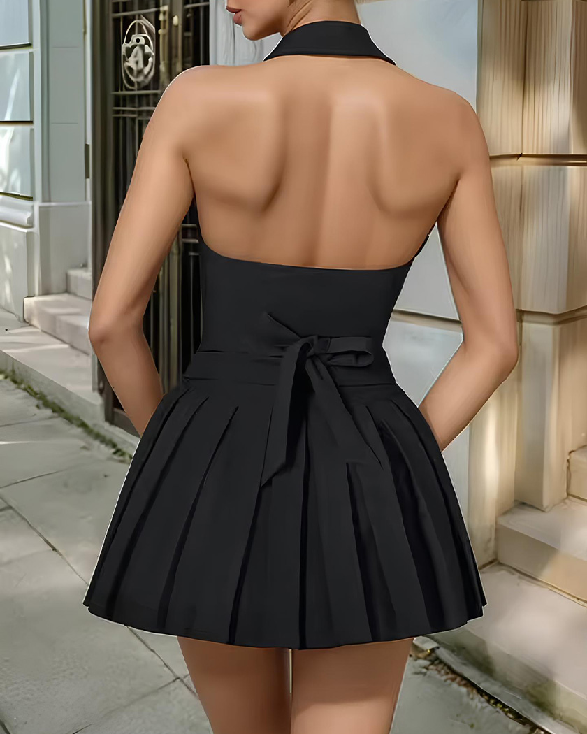 Ensemble blazer dos nu et jupe plissée