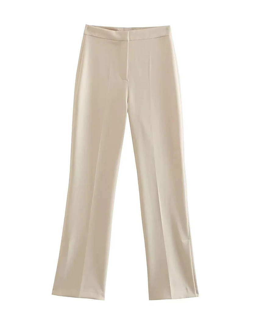 Le pantalon droit allonge votre silhouette grâce à une fente subtile en bas, un détail structurant qui dévoile vos chevilles avec subtilité et finesse. Un duo disponible en beige lumineux ou noir intense.