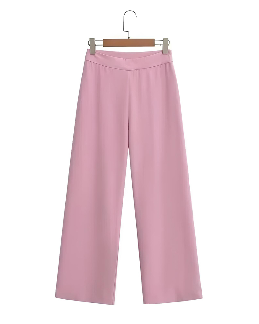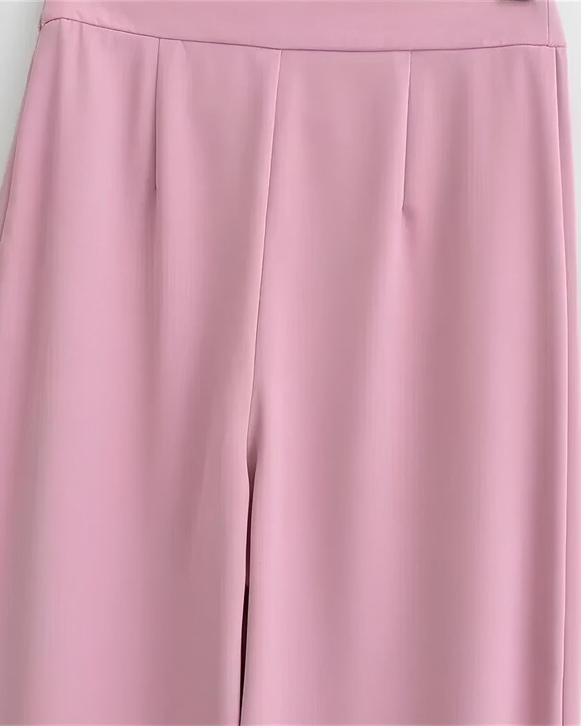 La nuance rose tendre de cet ensemble attire la lumière et adoucit les lignes. Le tissu du pantalon offre un tombé remarquablement fluide, vous procurant cette sensation de légère caresse sur la peau à chaque mouvement.
