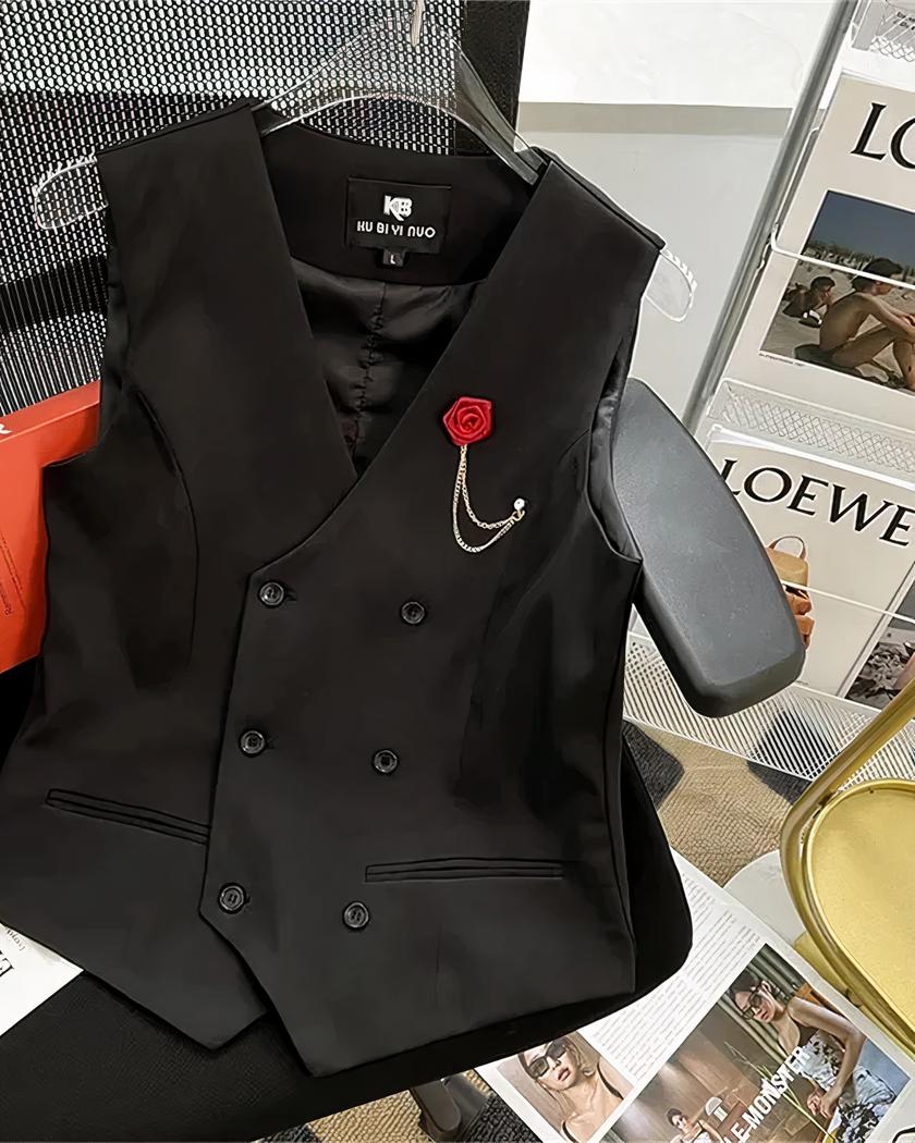 Chaque détail de notre gilet blazer a été pensé pour sublimer votre silhouette : sa coupe ajustée souligne élégamment la taille tandis que son style sans manches ajoutent une touche de finesse à votre allure. Les boutons doubles apportent une note chic supplémentaire, parfaite pour les occasions où vous souhaitez vous démarquer.