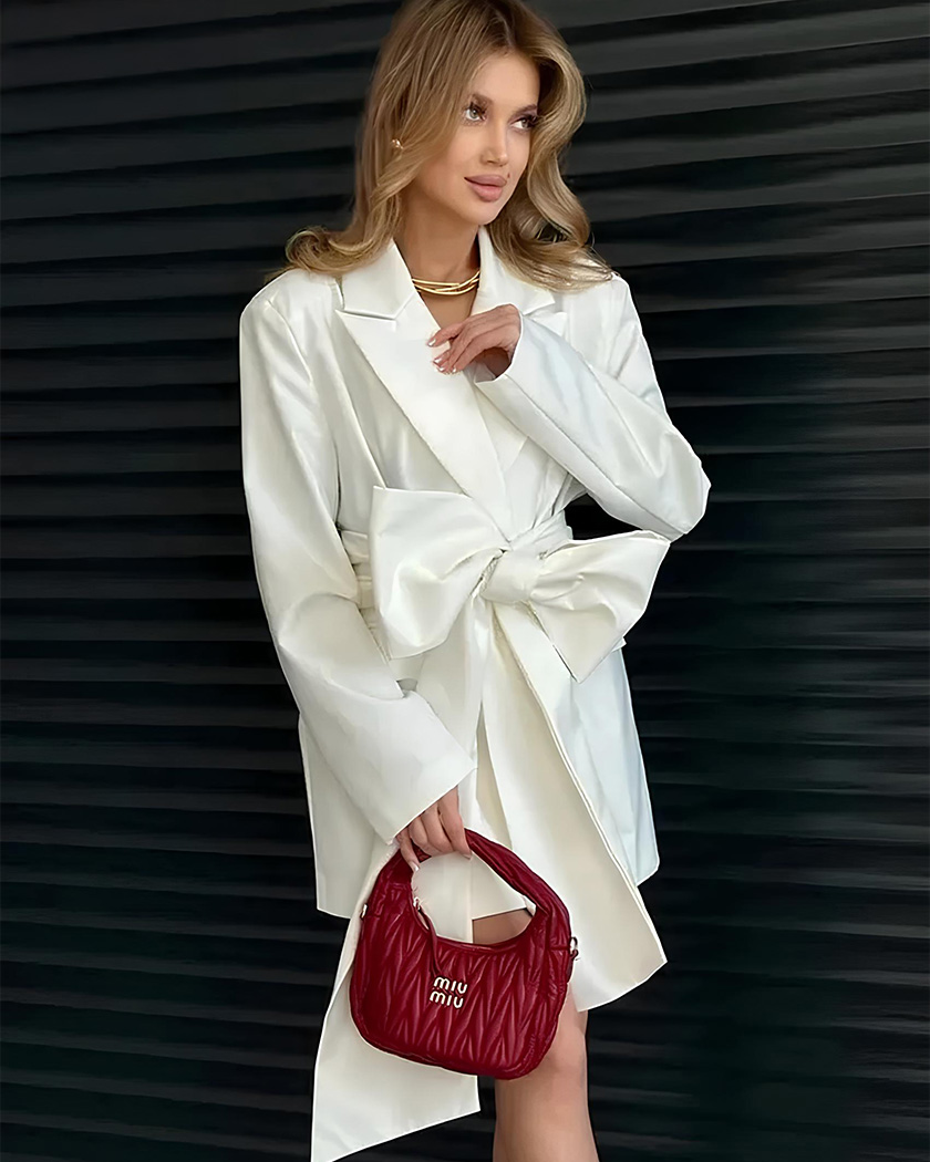 Envie d’un coup d’éclat instantané pour les beaux jours ? La robe blazer courte à grand noeud, avec sa coupe ample, son ruban sculptural et ses trois teintes chic propulsent vos looks de soirée au rang de véritable statement, tout en offrant une liberté de mouvement totale.
