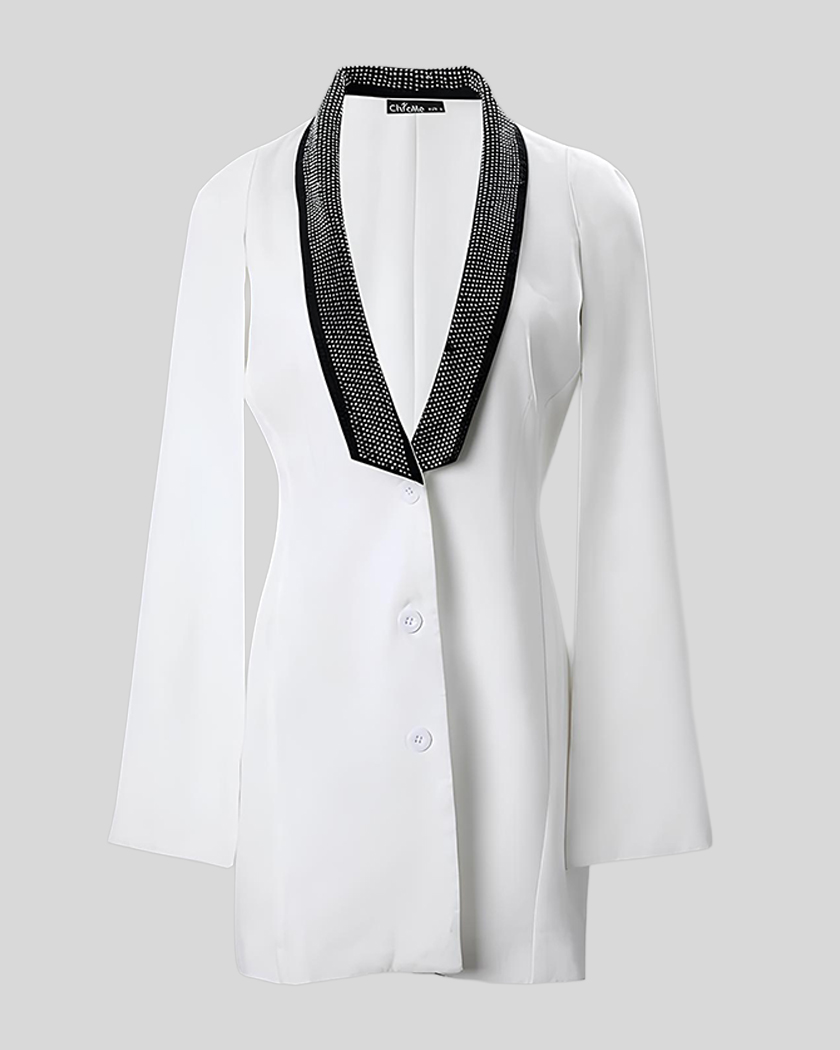 A la recherche d’un look qui fait vibrer la pièce avant même que vous ne parliez ? La robe blazer décolletée à manches cape associe un décolleté vertigineux, un col bijou scintillant et une coupe mini gainante pour refléter une version de vous même sexy et confiante à souhait.