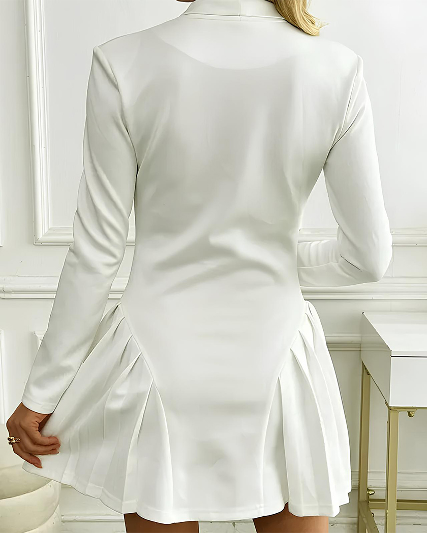 La robe blazer plissée vous apporte un coup de fraicheur et de légèreté en toute élégance. Elle marie ligne tailleur et jupe façon tennis pour rendre votre allure irrésistiblement vive. Sa matière stretch épouse vos formes, ses boutons gainent votre buste et vous voilà prête à capter les regards du matin au dernier toast du soir.